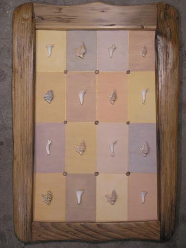 Shells and shell fragments with driftwood frame