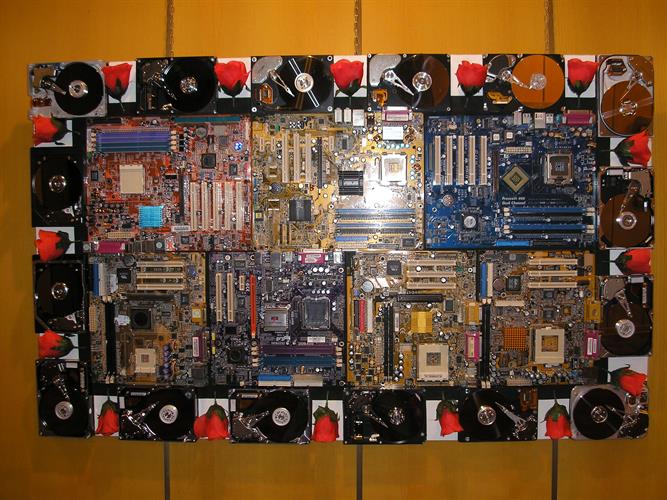 Hard drives, motherboards and plastic roses, a satire on the idea of finding love online