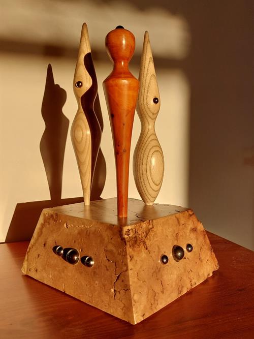 Made from ash, yew, acacia burr and ball bearings