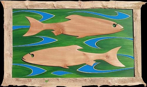 Fish made from Welsh elm, frame in Anglesey driftwood