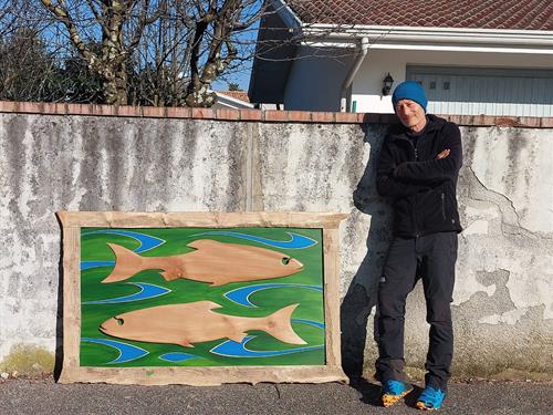 Fish made from Welsh elm, frame in Anglesey driftwood